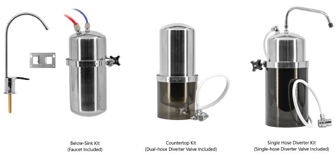 - Countertop configuration – Sits next to the sink and connects to most standard faucets.