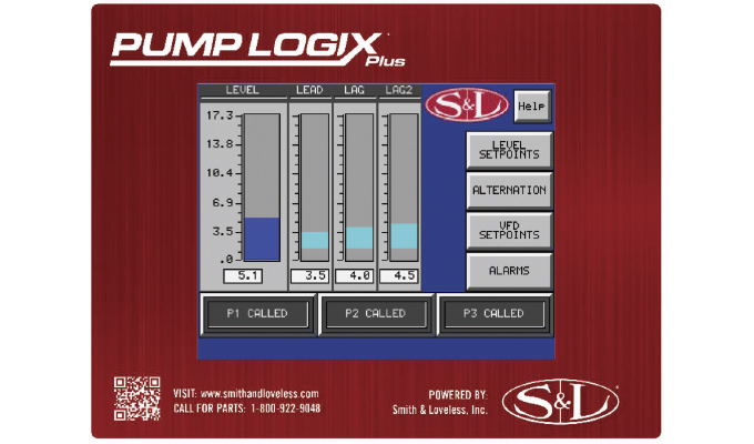 PumpLogix™ Plus features a touchscreen LCD graphical interface mounted on the panel front, providing convenient access to intuitive navigation, built-in help screens, and real-time system visibility. The controller includes built-in input and output capacity that supports two- or three-pump configurations without requiring costly customization. Standard functionality includes four relay outputs for pump control and station alarms, along with a level transducer and backup float capability, delivering a complete and reliable control package. For more information, visit www.smithandloveless.com.
