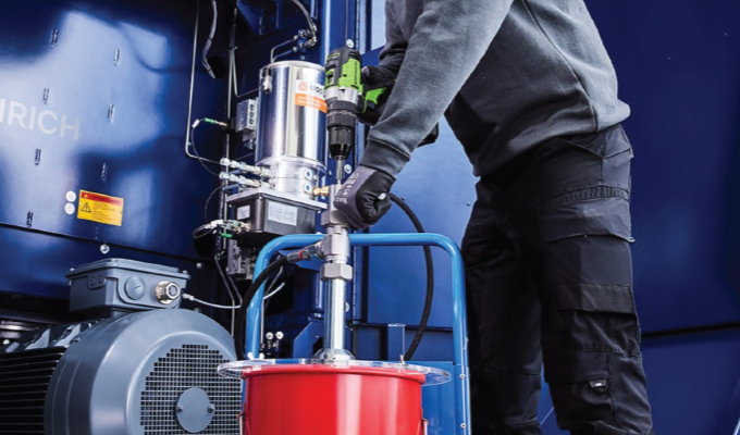 Handling lubricating grease can be a physically demanding task for maintenance engineers. This is especially true when thick grease has to be delivered using ergonomically unfavorable hand pumps. The Lutz Lube Drive filling tool, which can be powered by a cordless screwdriver, provides relief.